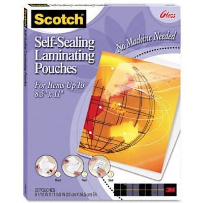 Self-Sealing Glossy Laminating Pouches for 8-1/2 x 11 Sheets - 9.6 mils, 8-1/2 x 11, 25 per Pack(sold in packs of 3)
